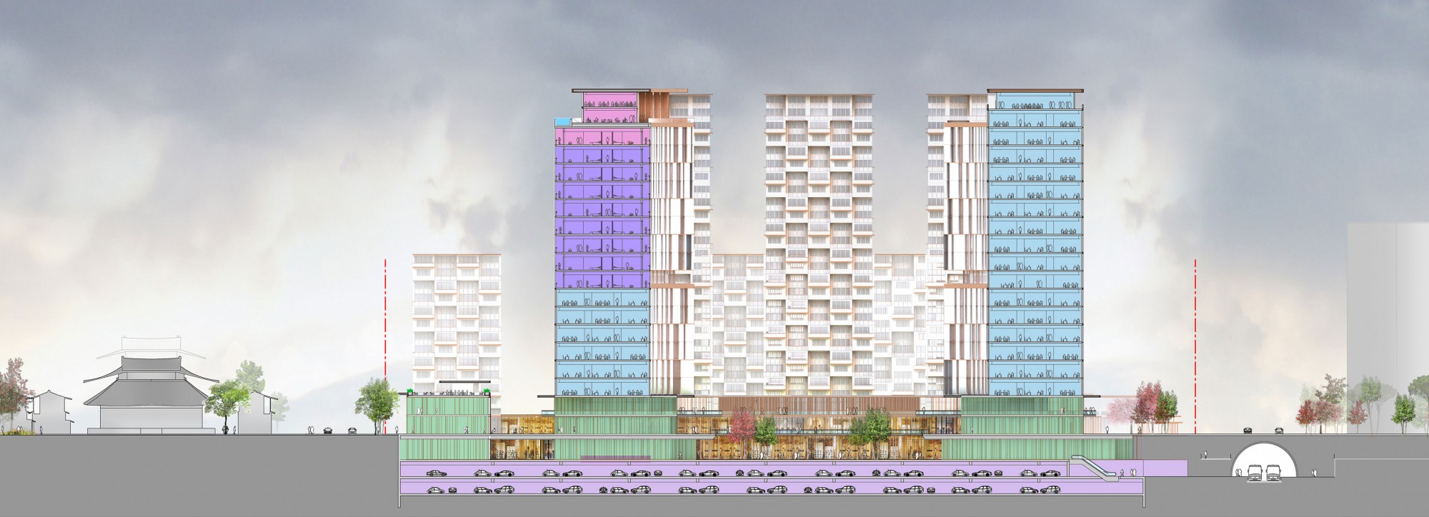 Construction d’un quartier d’affaire comprenant 45.000m² de bureaux, 21.000m² de commerces, 47.000m² de logements et 6.000m² d’hôtels à Hangzhou en Chine.